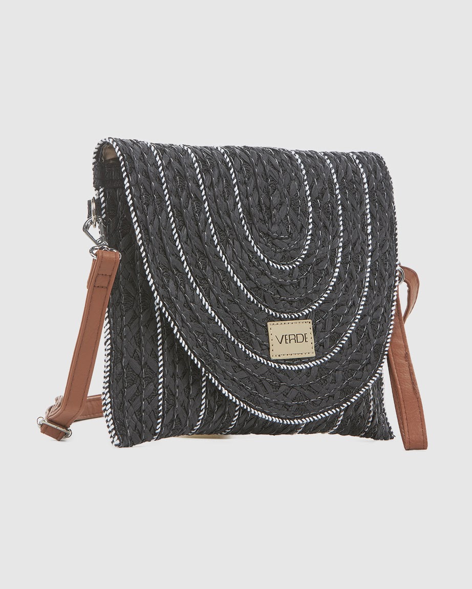 Verde Γυναικεια Τσαντα Χιαστι 48-0258 Ψαθινη/ Μαυρο